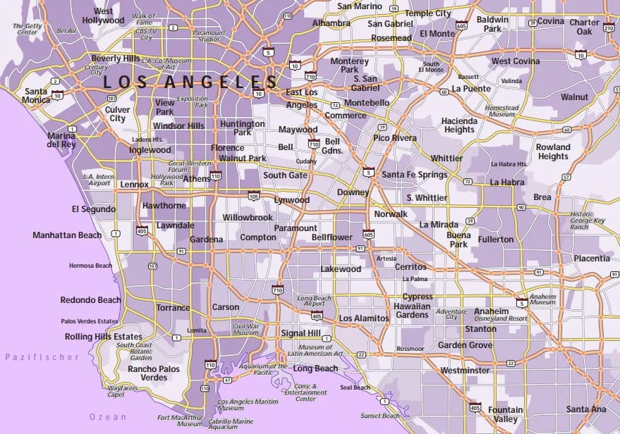 Der totale Gegensatz dazu sind z. B. die Stadteile Compton, Inglewood oder auch South Central wo es nicht selten zu Auseinandersetzungen zwischen Gangs untereinander sowie der Polizei kommt. Die Verbrechensrate ist dort extrem hoch. Die Bewohner dieser Vororte bzw. Stadtviertel leben meist am Existenzminimum. Einige Gegenden sollten Sie in den Abendstunden tunlichst meiden. Trotzdem zählt die Megacity Los Angeles zu den interessantesten Städten der Welt, nicht zuletzt wegen der kulturellen Vielfalt, der herrlichen Strände sowie der Filmindustrie.
